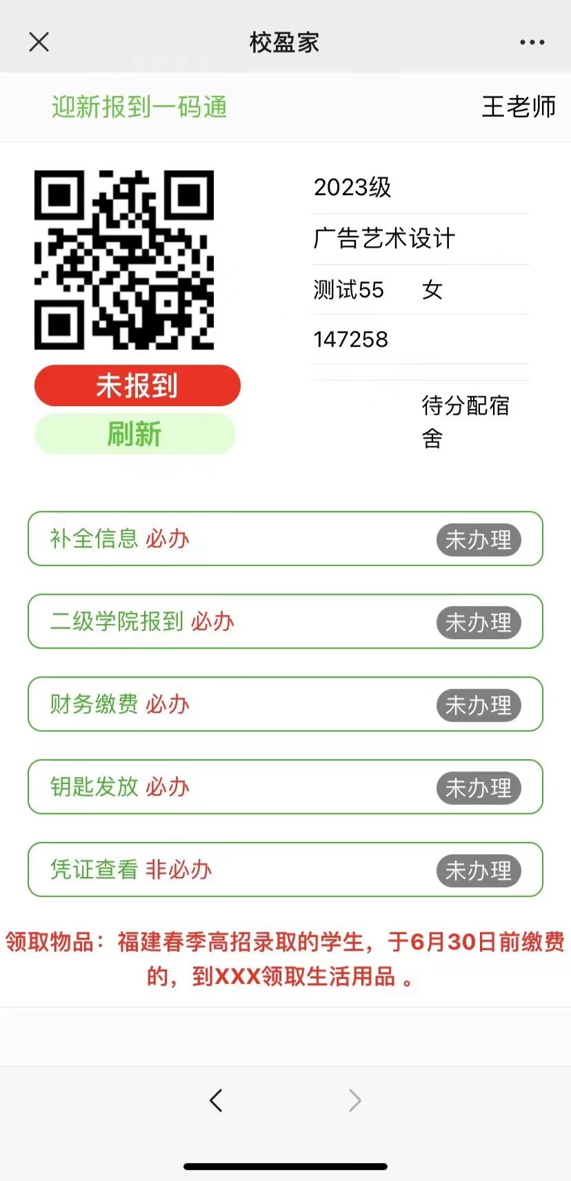 校盈家迎新报到一码通管理系统利用互联网技术与二维码应用相结合,实现了学校迎新收费智能化管理